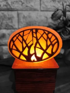 The salt crystals are hand-carved or shaped to create the lamp. Some lamps retain their natural shape, while others are crafted into specific designs.