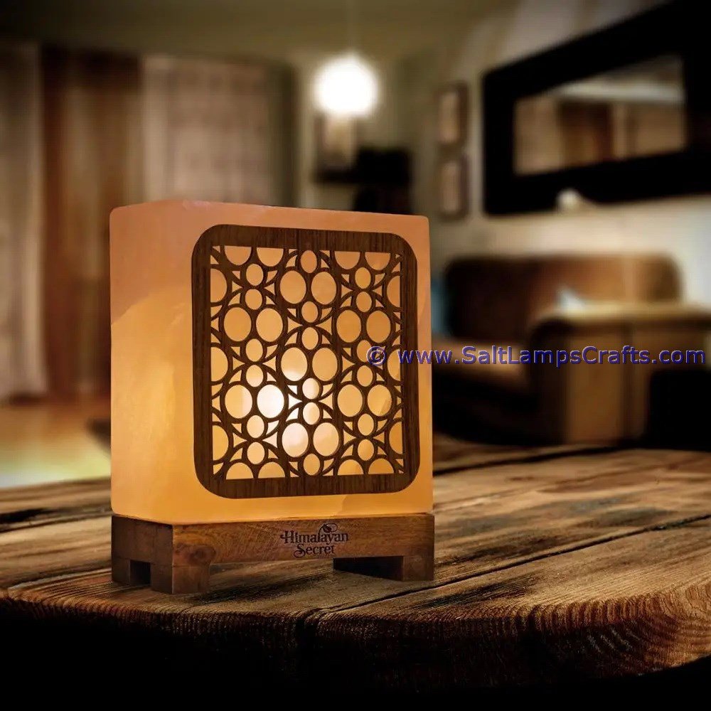 Himalayan 3D Salt Lamps in 3D Design Prints Wood Square Design