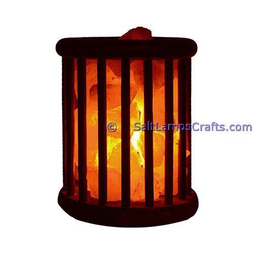 [Himalayan Salt Lamps Cylinder Design Wooden Basket with Chunks for Home Office Hotel Decor ]