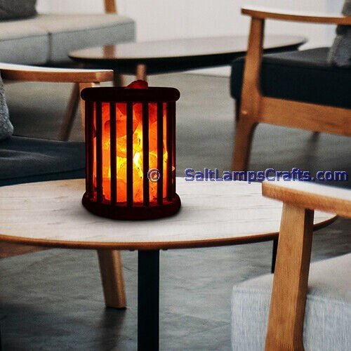 • The lamp is securely placed within a wooden basket, providing stability and an extra layer of protection. The wooden basket complements the salt chunks, adding a rustic and earthy element to the overall design.