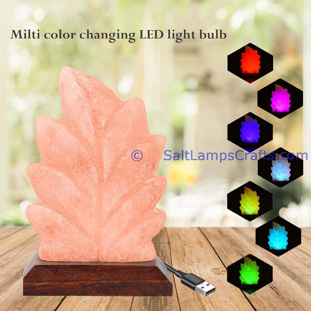 Himalayan Usb Salt lamps Leaf Design with Usb Plug Auto Color Change Healing Meditation Relaxation